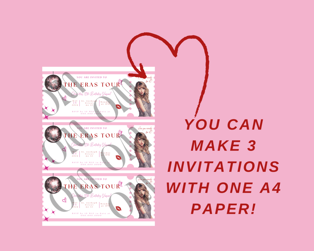 WHAT IS INCLUDED? • * 7"x3" Editable Invitation (Download as JPG, PDF, PNG) Taylor Eras Tour Party Ticket Stub Birthday Invite TS Party Swiftie Birthday Custom Invitation In My Birthday Era Taylor Birthday Invitation